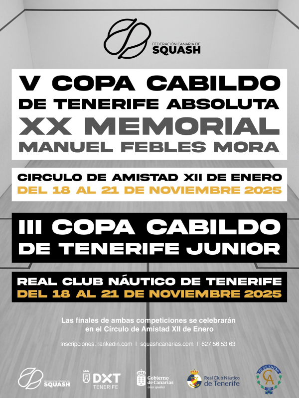 ABIERTAS LAS INSCRIPCIONES A LA V COPA CABILDO ABSOLUTA 2025 XX MEMORIAL MANUEL FEBLES Y LA III COPA CABILDO DE TENERIFE JUNIOR 2025 https://squashcanarias.com/wp-content/uploads/2025/11/final-724x1024.png 724 1024 fcscanarias https://secure.gravatar.com/avatar/27ce3e5f63e8f45b56c1563cda19a103?s=96&d=mm&r=gFinalizan la IV Copa Cabildo de Tenerife Absoluta y la II Copa Cabildo de Tenerife Junior