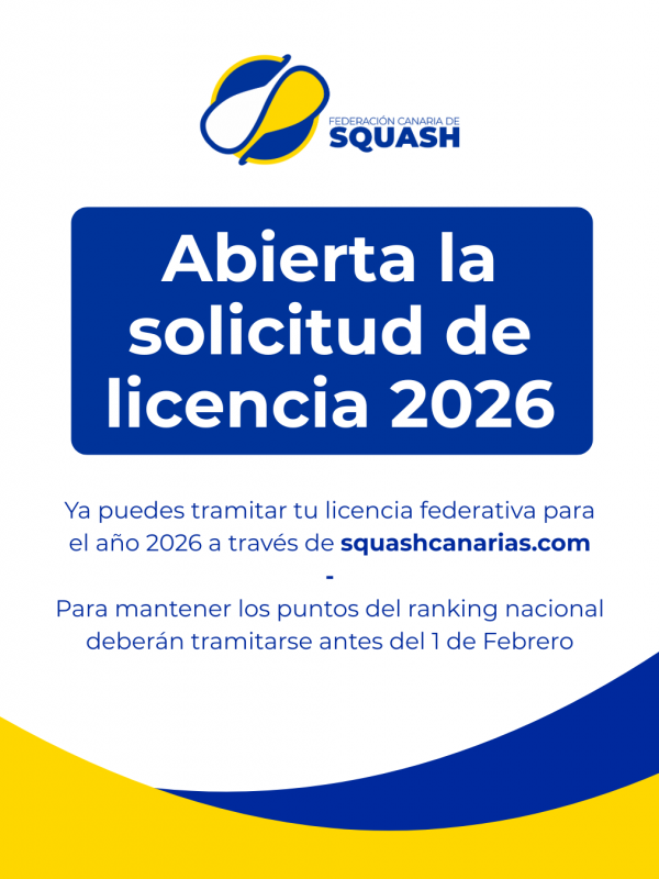 ABIERTAS LAS INSCRIPCIONES A LA I COPA CABILDO DE TENERIFE 2026 https://squashcanarias.com/wp-content/uploads/2026/01/i-copa-cabildo-2026-3-724x1024.png 724 1024 fcscanarias https://secure.gravatar.com/avatar/27ce3e5f63e8f45b56c1563cda19a103?s=96&d=mm&r=gAbierta la solicitud de licencia federativa 2026
