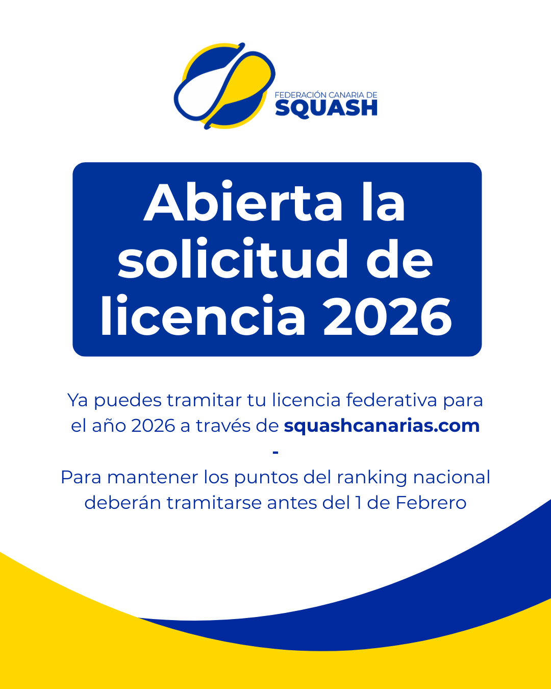 Abierta la solicitud de licencia federativa 2026 Abierta la solicitud de licencia federativa 2026 https://squashcanarias.com/wp-content/uploads/2025/12/post-ig-819x1024.png 819 1024 fcscanarias fcscanarias https://secure.gravatar.com/avatar/27ce3e5f63e8f45b56c1563cda19a103?s=96&d=mm&r=g diciembre 26, 2025 diciembre 26, 2025 Alta Licencia Federativa